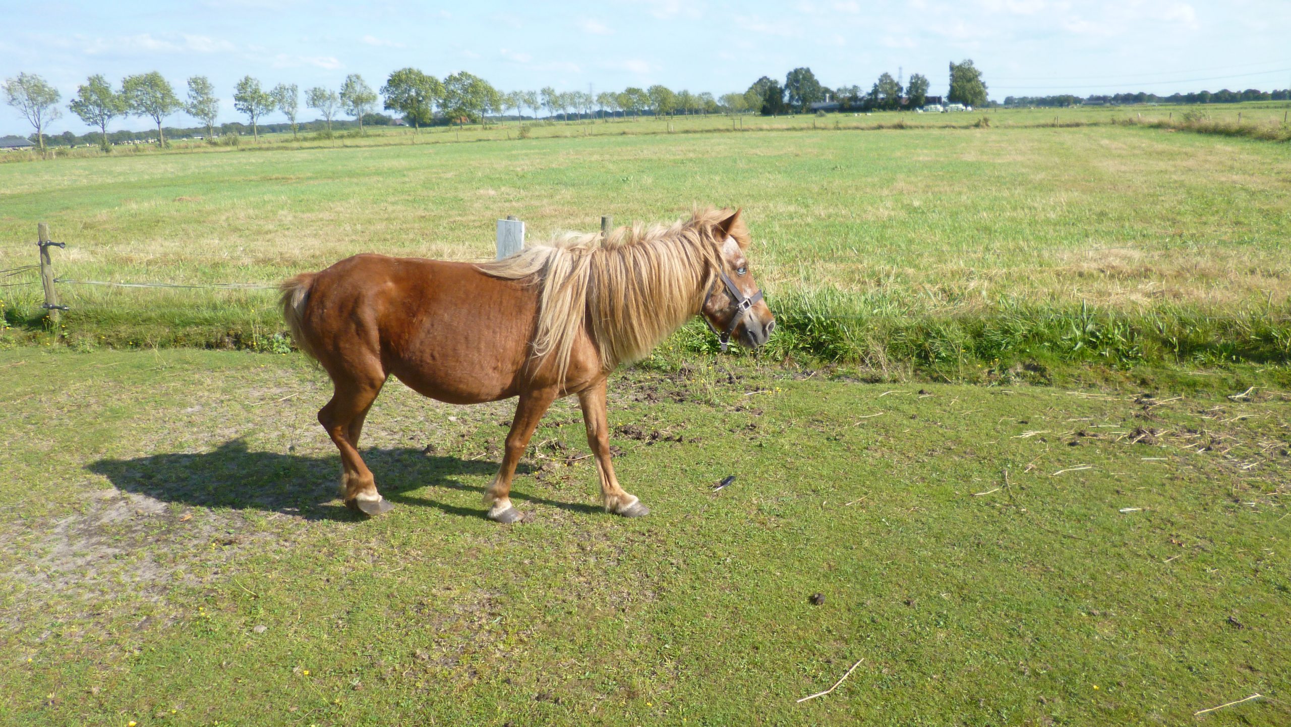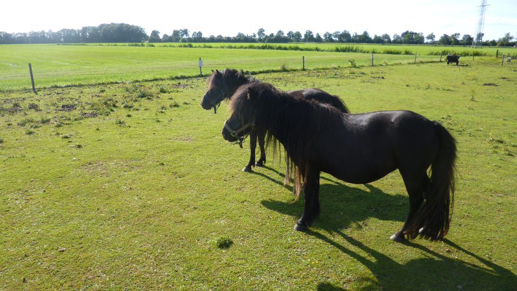 Naast en achter het vakantiehuis is een weiland waar enkele pony’s lopen…